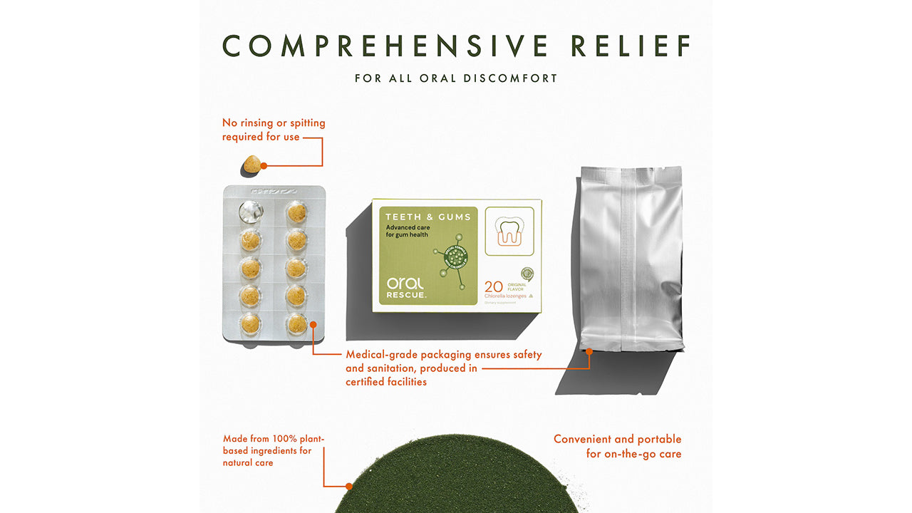 Oral Rescue Lozenges are a natural oral care solution designed to ease various oral sensitivities, such as discomfort from canker sores, gum tenderness, mouth irritations, and dryness. They work by soothing irritation and accelerating the healing process.